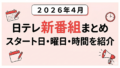 4月スタートの新ドラマをまとめてチェックしたい場合は、2026年4月ドラマ一覧|曜日別でわかる春の新ドラマまとめもあわせて読むと流れがつかみやすいです。フジテレビ以外の注目作もまとめて確認できます。