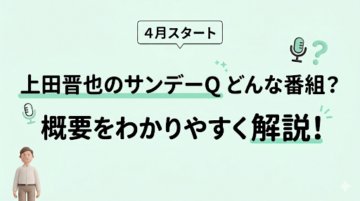 『上田晋也のサンデーQ』が始まる背景には、TBSの春改編も大きく関係しています。2026年4月のTBS番組改編まとめ|注目番組と変更ポイントをチェックを読むと、放送枠の変化や新番組の位置づけもよりわかりやすく見えてきます。
