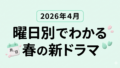 特にTVerは、春の新ドラマ特集やドラマカテゴリがまとまっているため、「今期の4月ドラマをざっと探したい」というときに便利です。2026年春ドラマの一覧はORICONやWEBザテレビジョンでも確認できます。